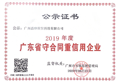 榮譽資質-2019年度晶鏵守合同重信用證書